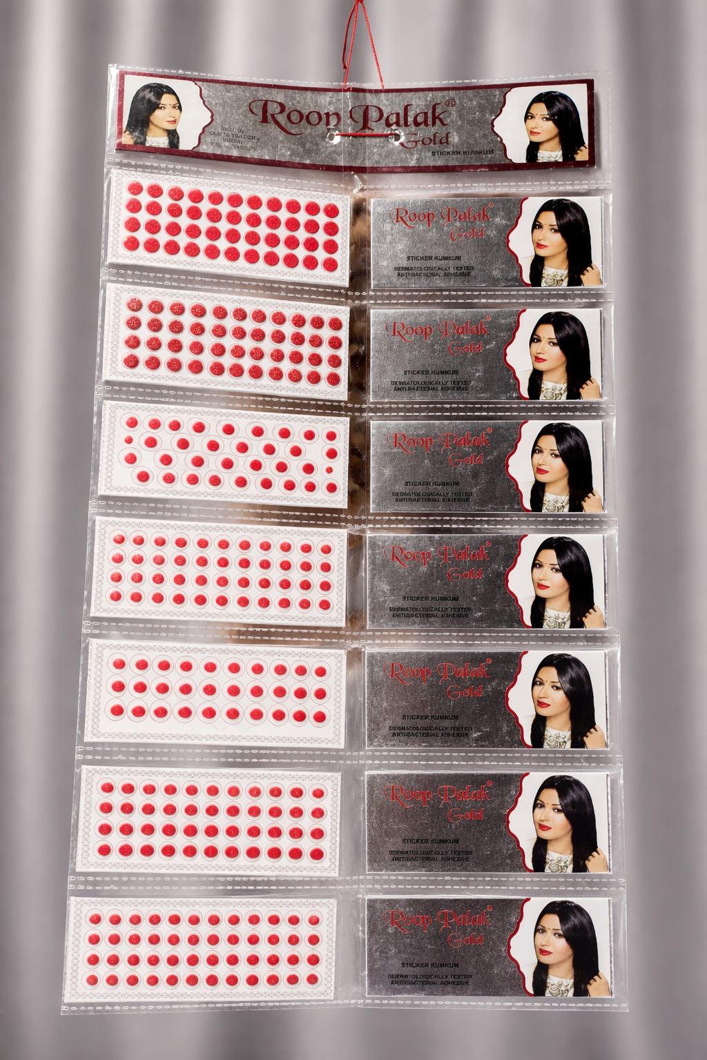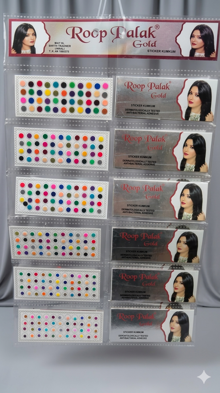 Enhance your traditional elegance with the Roop Palak Gold Bindi Collection, designed to add a graceful finishing touch to every look. This premium set features neatly arranged bindis in vibrant red shades along with decorative embellishments, perfect for daily wear, festive occasions, weddings, and cultural events.
